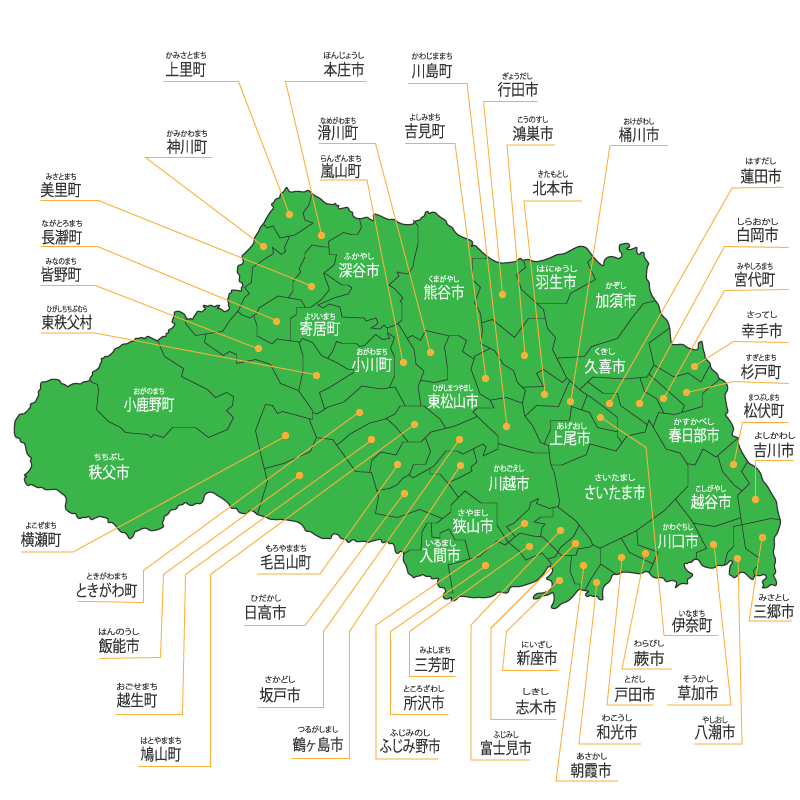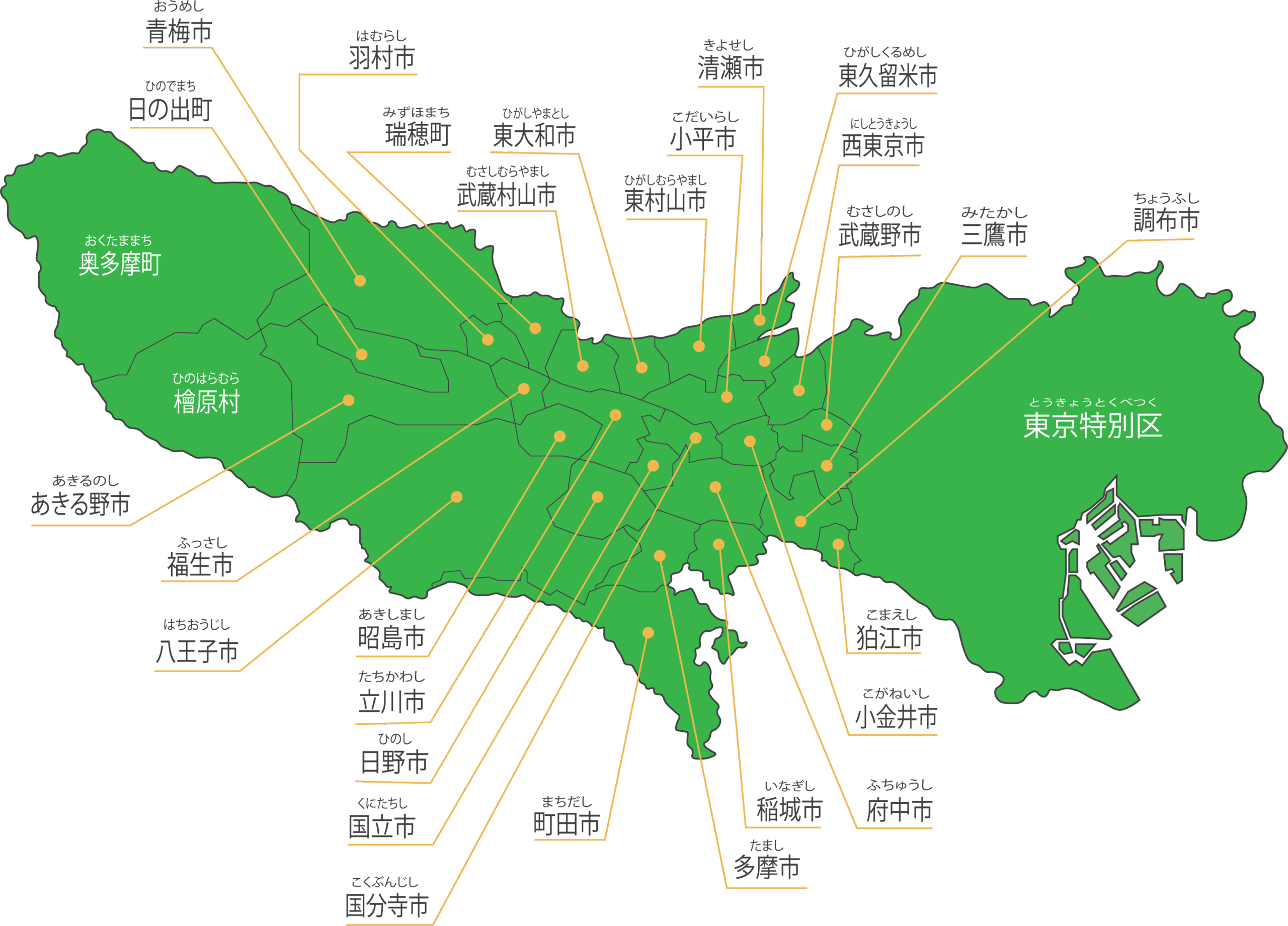 黄色の地域に関しては、一部地域で対応が難しい場所があります。